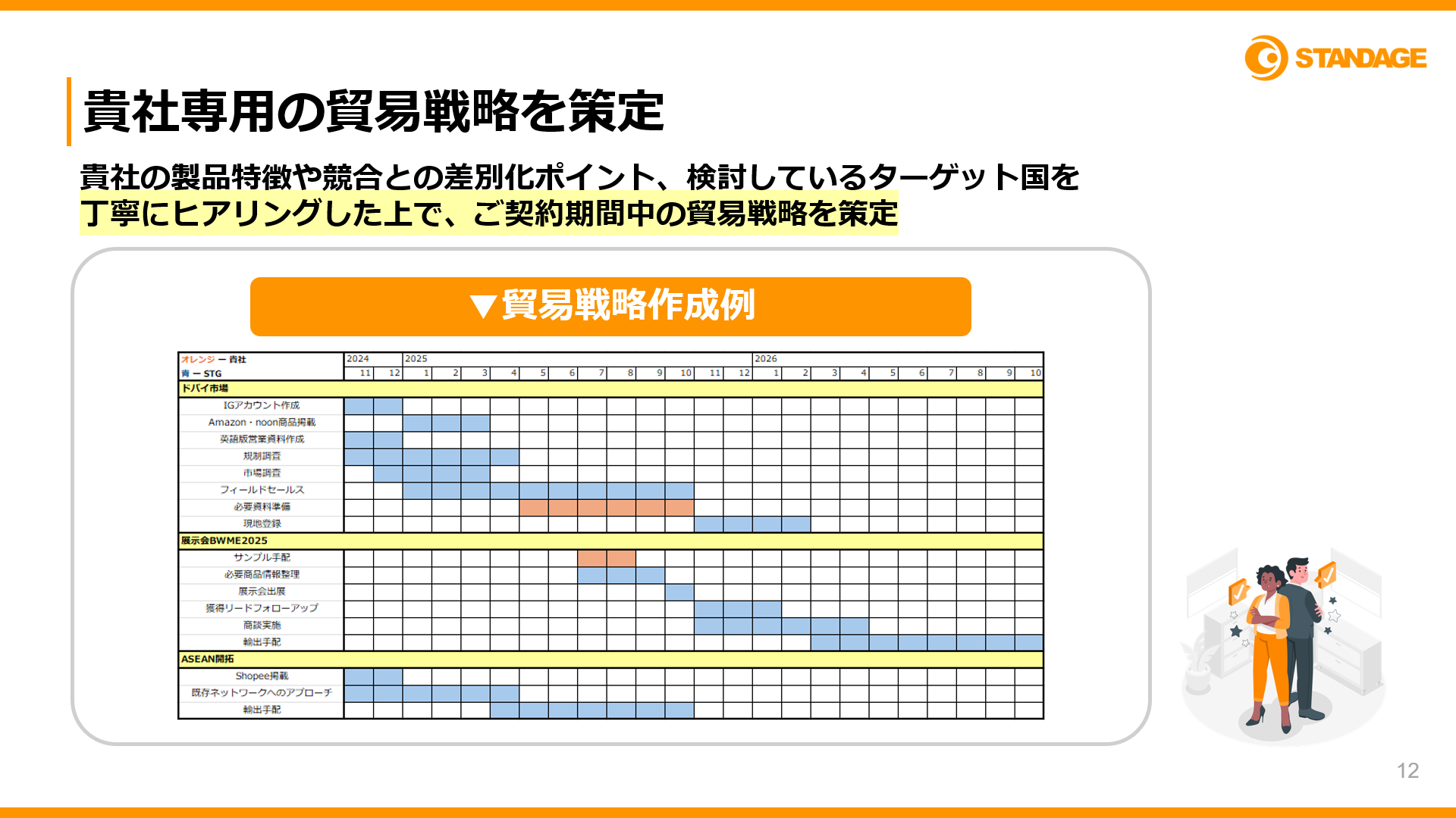 専属のカスタマーサクセスが、貴社専用の2年間の貿易戦略を策定します。 - 市場調査・競合分析