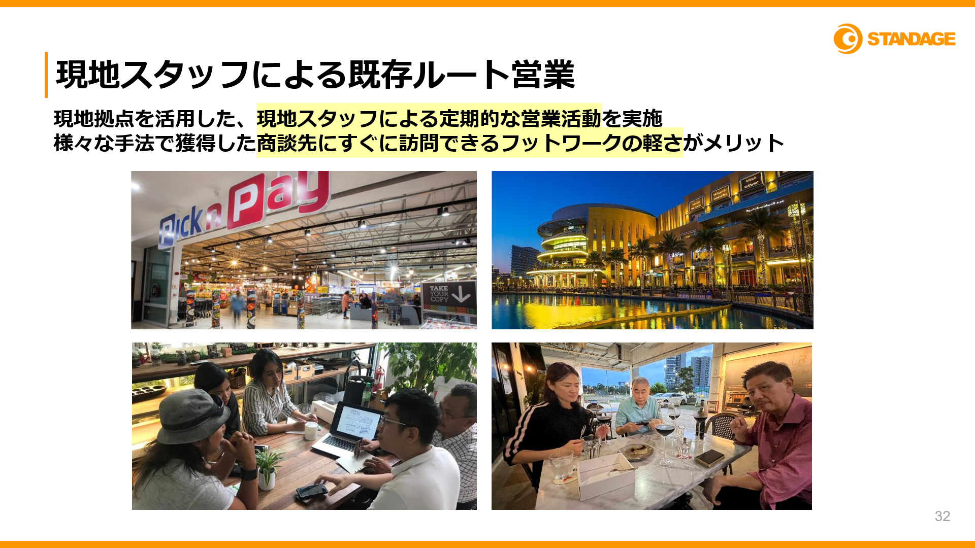 現地スタッフによる営業活動、展示会出展代行、SNSを活用したマーケティングなど、多角的なアプローチで販売先を開拓します。